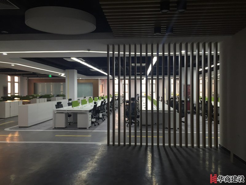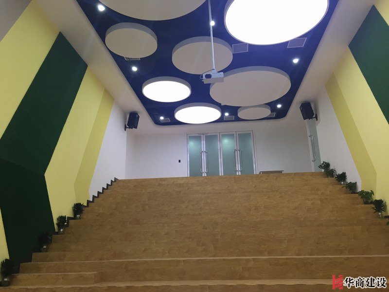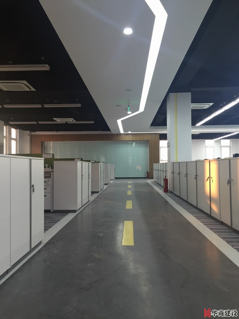項目主要用材:裸頂噴漆、玻璃隔斷、地面地膠、局部石膏板造型吊頂、草坪乳膠漆箭頭造型