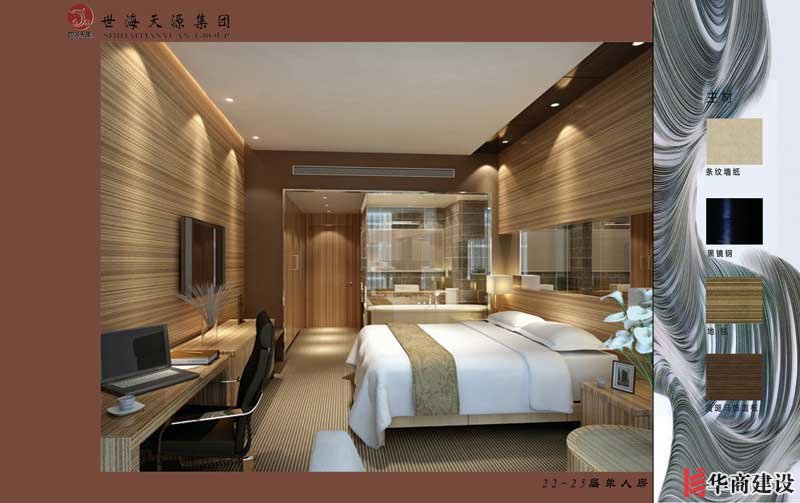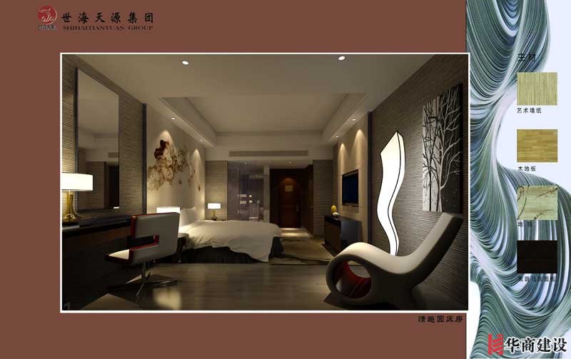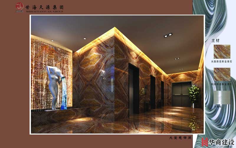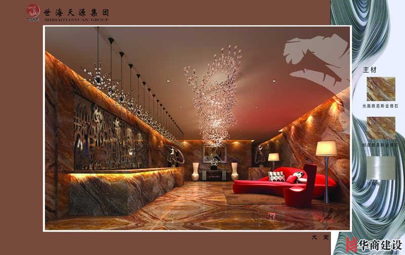 結(jié)合空間的藝術特點,設計師特別注重了材質(zhì)的搭配和對比,光滑與粗糙、黑與白,相互的撞擊著,強化了空間的質(zhì)感,并豐富著視覺的層次。大堂以紋路豐富的路易斯金為主材,光潔明亮的墻面和天然粗礪的服務臺形成強烈的對比,營造出自然、淳樸、溫暖的氛圍,獨具匠心的大堂吊燈,充滿了童心稚趣,也有大珠小珠落玉盤之勢,非常引人注目。除此之外,在軟裝和家私擺設上也經(jīng)過深思熟慮的考究,在進入電梯間的入口處的藝術水景更是增添了更多的藝術成分,創(chuàng)造出優(yōu)雅、閑適的氣質(zhì)。客房空間以大花白石材、黑鏡鋼和黑玻及藝術墻紙為主材,把空間營造出層次豐富、質(zhì)感十足。