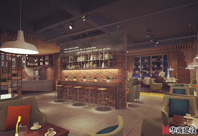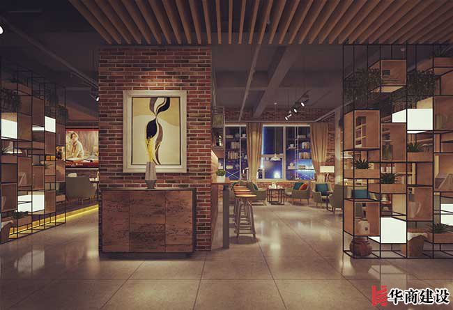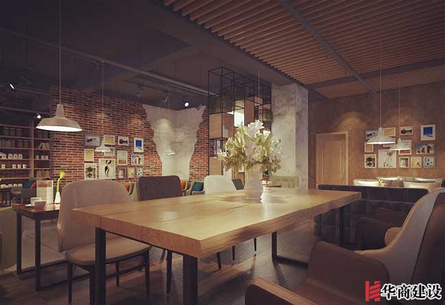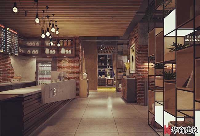 在本案工業(yè)風(fēng)咖啡館吊頂設(shè)計(jì)上,我們依然采用了大面積的裸露水泥頂,只是簡(jiǎn)單的做了色彩的處理,另外在咖啡館的局部區(qū)域,我們的吊頂風(fēng)格采用了木質(zhì)鏤空格柵的裝飾設(shè)計(jì)手法,與店面內(nèi)的裝飾風(fēng)格毫不違和、自成一體。