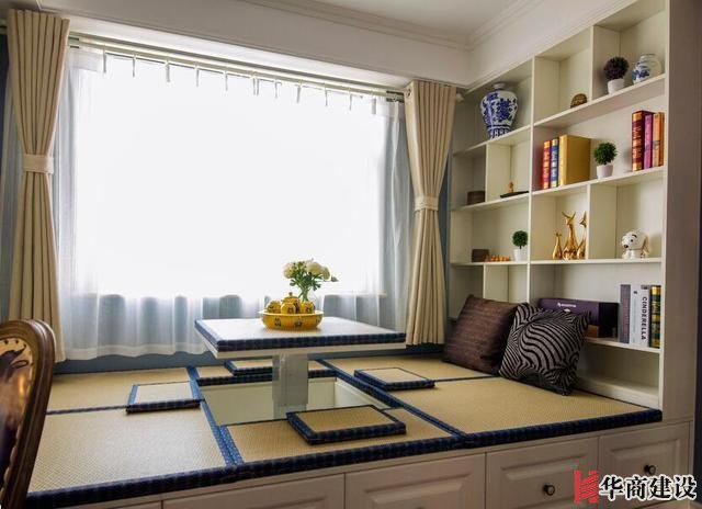擔(dān)心墻面都是柜子顯得壓抑的話,還可以選擇榻榻米+展示架,放一些裝飾物,書(shū)籍、花瓶、鐘表、相框、綠植等等,提升美感,讓房間更加有活力。