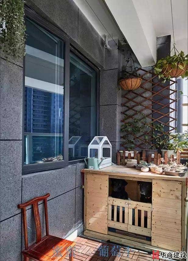 第三種:花架+休閑卡座成就大陽臺。實(shí)際生活中,好多人都有這個借口,陽臺都晾衣服了,哪有空間養(yǎng)花休閑?其實(shí)休閑不是物質(zhì)擺放,而是一種心情。比如住大別墅,沒有那個情調(diào),別墅也能住成豬窩;住小戶型,只要有對生活的熱情,也能住出世外桃源的味道。生活陽臺晾衣服,并不妨礙做休閑設(shè)計(jì),角落防腐木休閑卡座,搭配小型休閑桌,幾把休閑椅搭配,平時喝茶閑坐的好地方,剩余地方局部花盆花架點(diǎn)綴,生活和休閑兩不誤。
