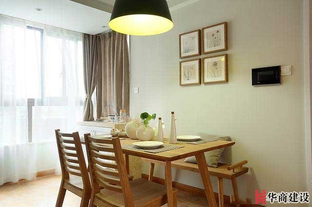 餐桌椅靠墻擺放,是那種帶板凳的原木餐桌,價格不低,外形要做改良。這個效果還是很滿意的。