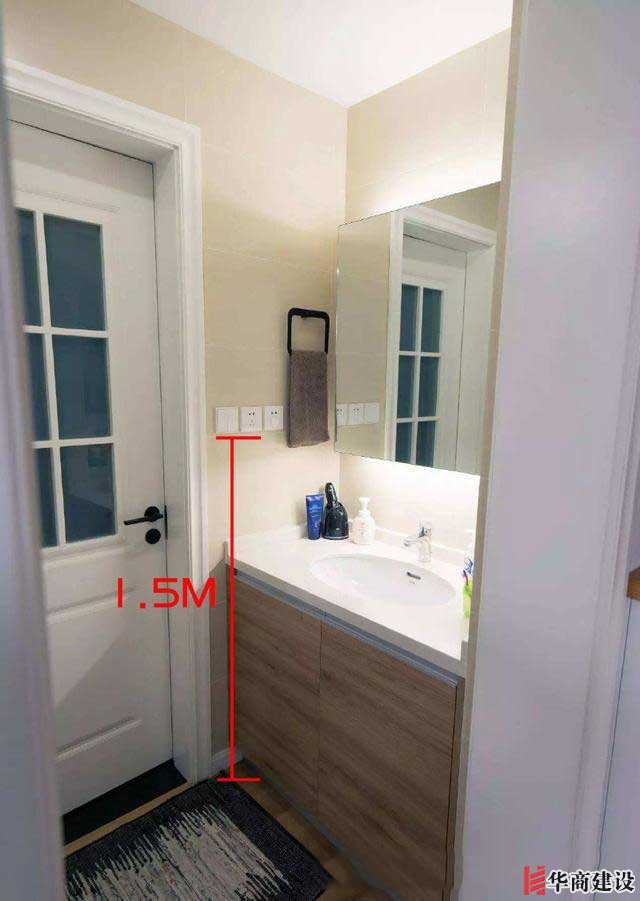 8、衛(wèi)生間開關(guān)插座距地面1.5米左右,且插座最好帶防濺罩