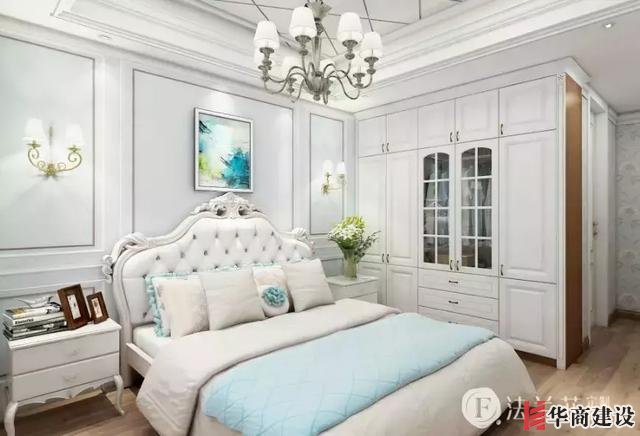 白色調(diào)臥室并不是所有的顏色都是白的,不然明晃晃的白還是蠻嚇人的,家具和墻面都是本色的,地板和背景墻可以做其他變化。