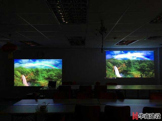 另外還有一種“幕布”推薦——這就是白墻。白墻的好處有以下幾點:首先是可以節(jié)約背景墻的費用,其次可以盡可能的投出最大尺寸,不管是16:9還是16:10或者是4:3的畫面都是滿屏狀態(tài)。當然缺點也比較明顯,就是需要環(huán)境比較暗,當然除了抗光幕,其他的幕布觀看時最好是都拉上窗簾。左邊是100寸激光電視+專用抗光幕,右邊則是1080P投影機+會議室普通白墻。