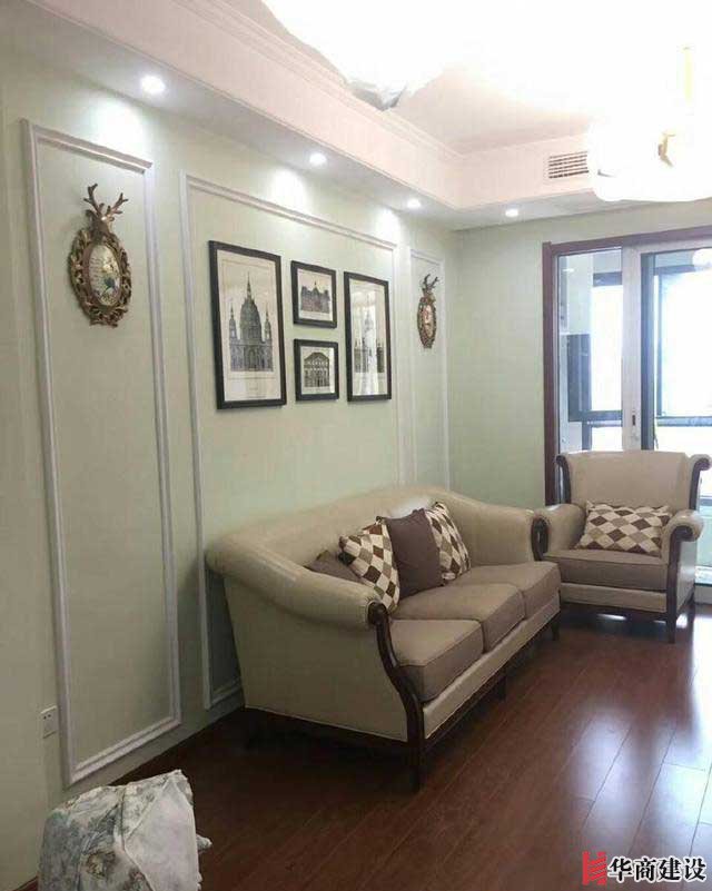 這邊是客廳,沙發(fā)背景墻貼簡(jiǎn)單的石膏線條,然后掛著幾幅掛畫裝飾,兩邊各掛著裝飾品,特別好看。客廳家具也是我比較喜歡的款式。