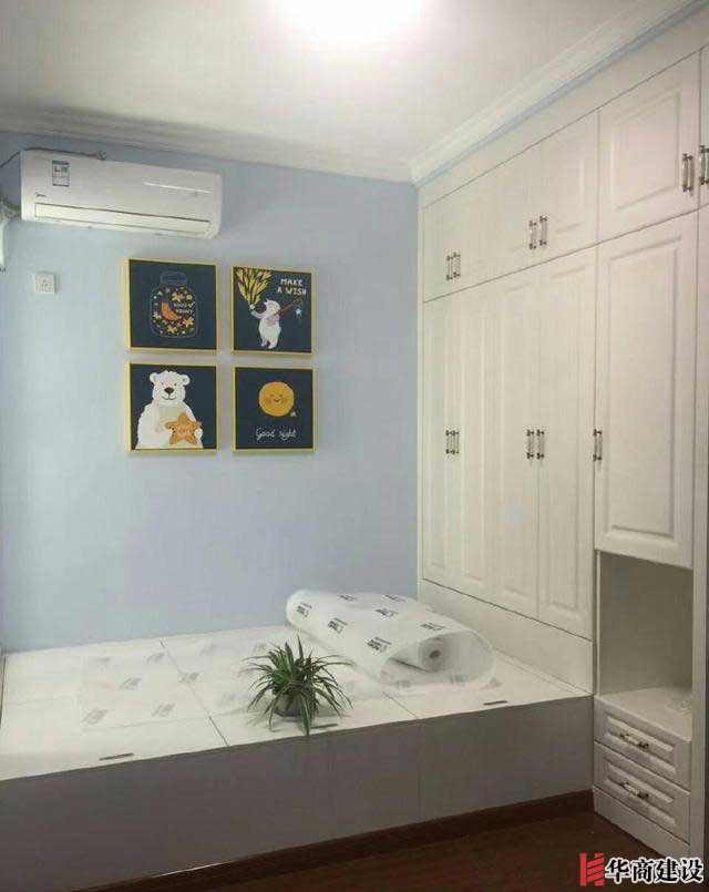 兒子的房間做了榻榻米,收納空間特別充足。墻面也是刷了藍(lán)色乳膠漆,掛畫裝飾畫很好看,一點(diǎn)都不單調(diào)呢。