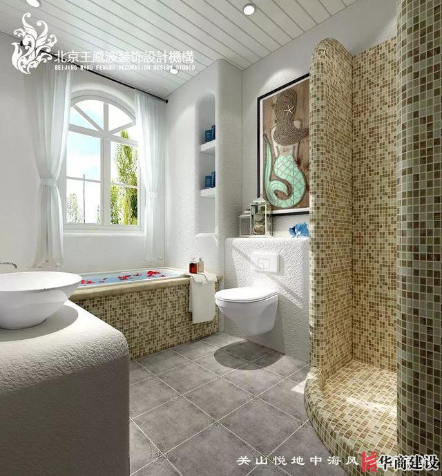衛(wèi)生間運用素色系馬賽克拼貼呈現(xiàn)地中海風(fēng)格的多樣美感